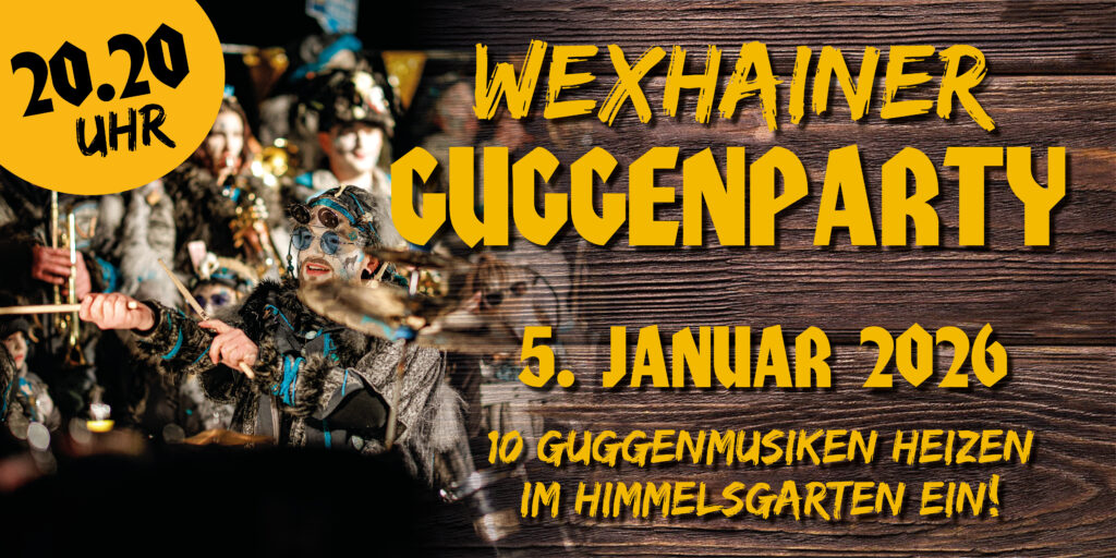Im Himmelsgarten warten zahlreiche Speisen und Getränke auf alle Gäste. Neben Roter Wurst und Thüringer gibt es unsere wilde Currywurst. Das Wexhainer Bar-Team versorgt große und kleine Narren mit heißen, aber auch erfrischenden Getränken wie Glühmoschd, Bier und vielem mehr. Eine weitere Besonderheit: eine große Schirmbar mit Cocktails sorgt für närrische Partystimmung. Genießen, feiern und richtig abtanzen – das alles geht bei unserer großen Guggenparty im Himmelsgarten.